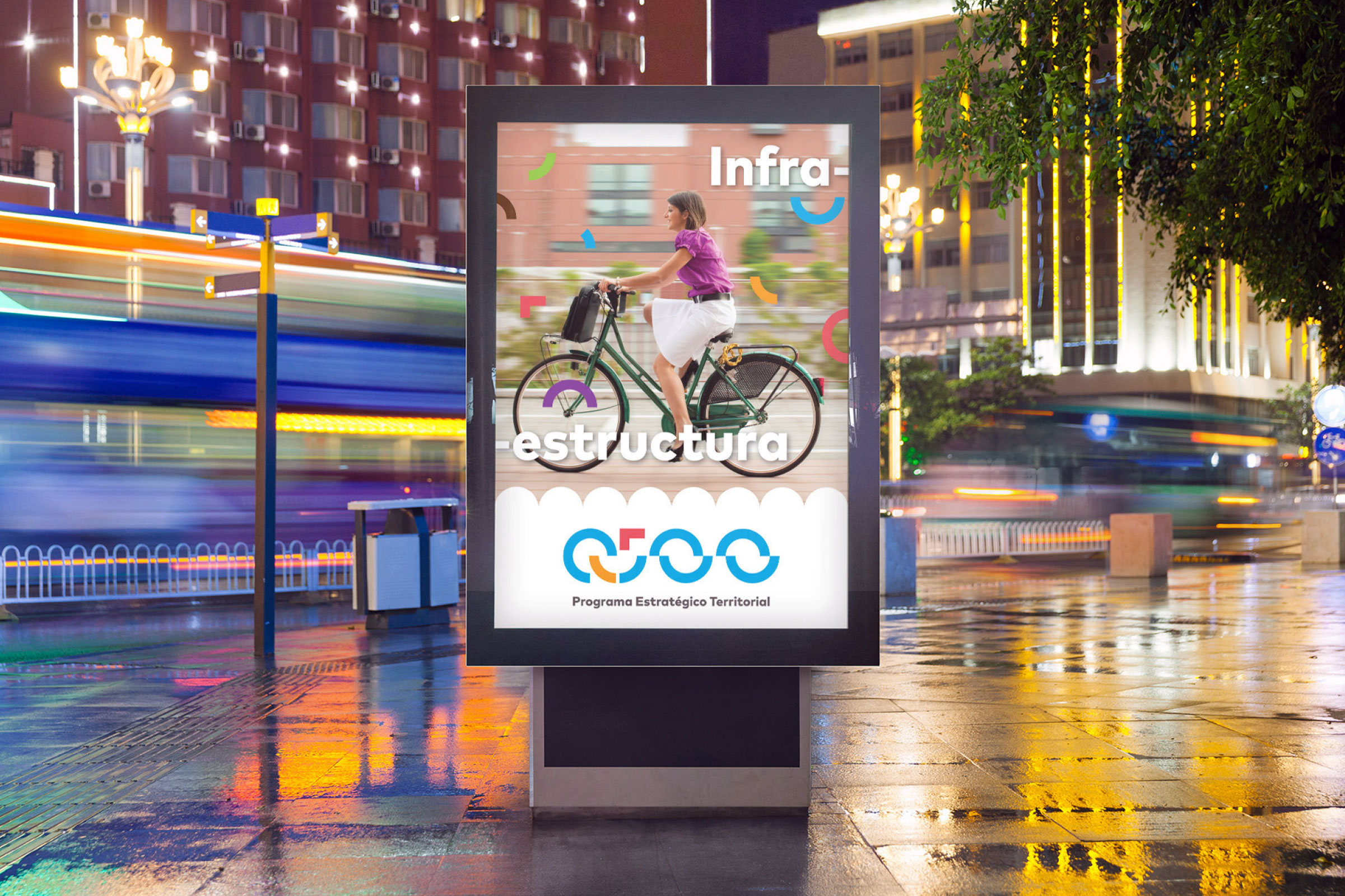 El logotipo es una metáfora visual de la continuidad del legado arquitectónico de la ciudad (arcos del acueducto) hacia un futuro idealizado y dinámico.