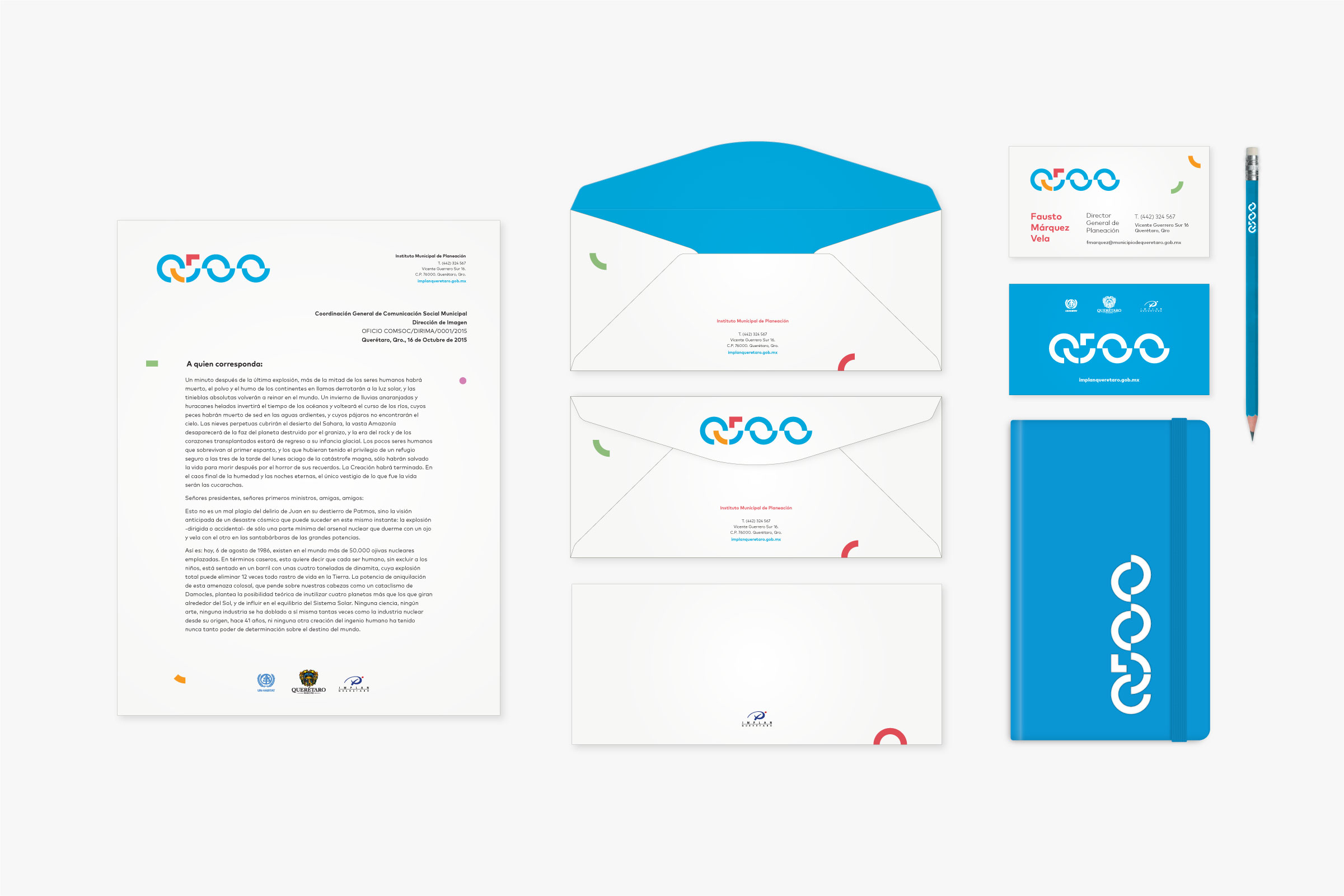 Identidad visual para el programa de ordenamiento territorial de la UNESCO para la ciudad de Querétaro en su 500 aniversario. Proyecto desarrollado para el Instituto Municipal de Planeación (Implan).